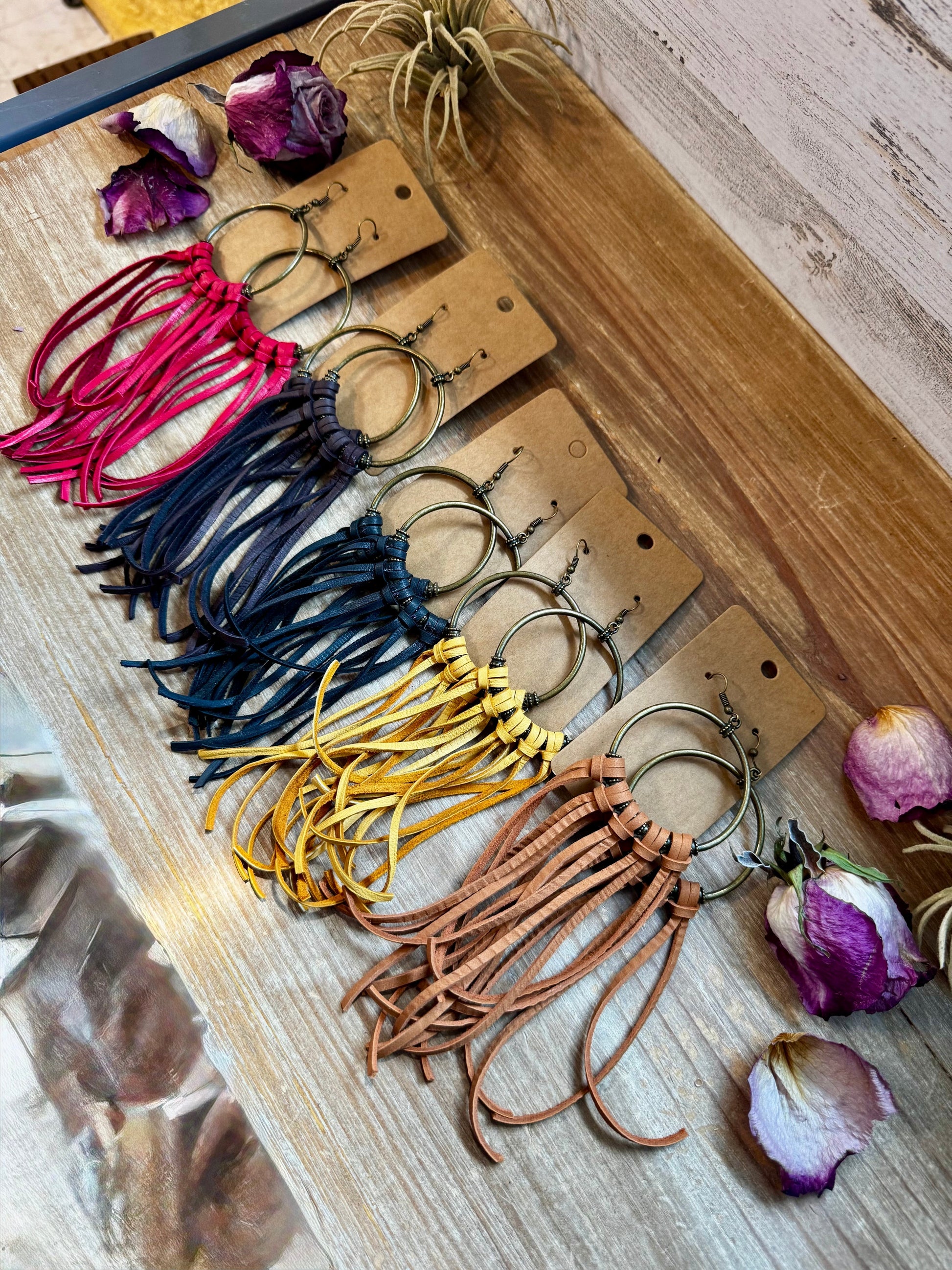 10 options Deer Skin Leather Hoop Earrings – 6.5" – Final Edition – USA Made