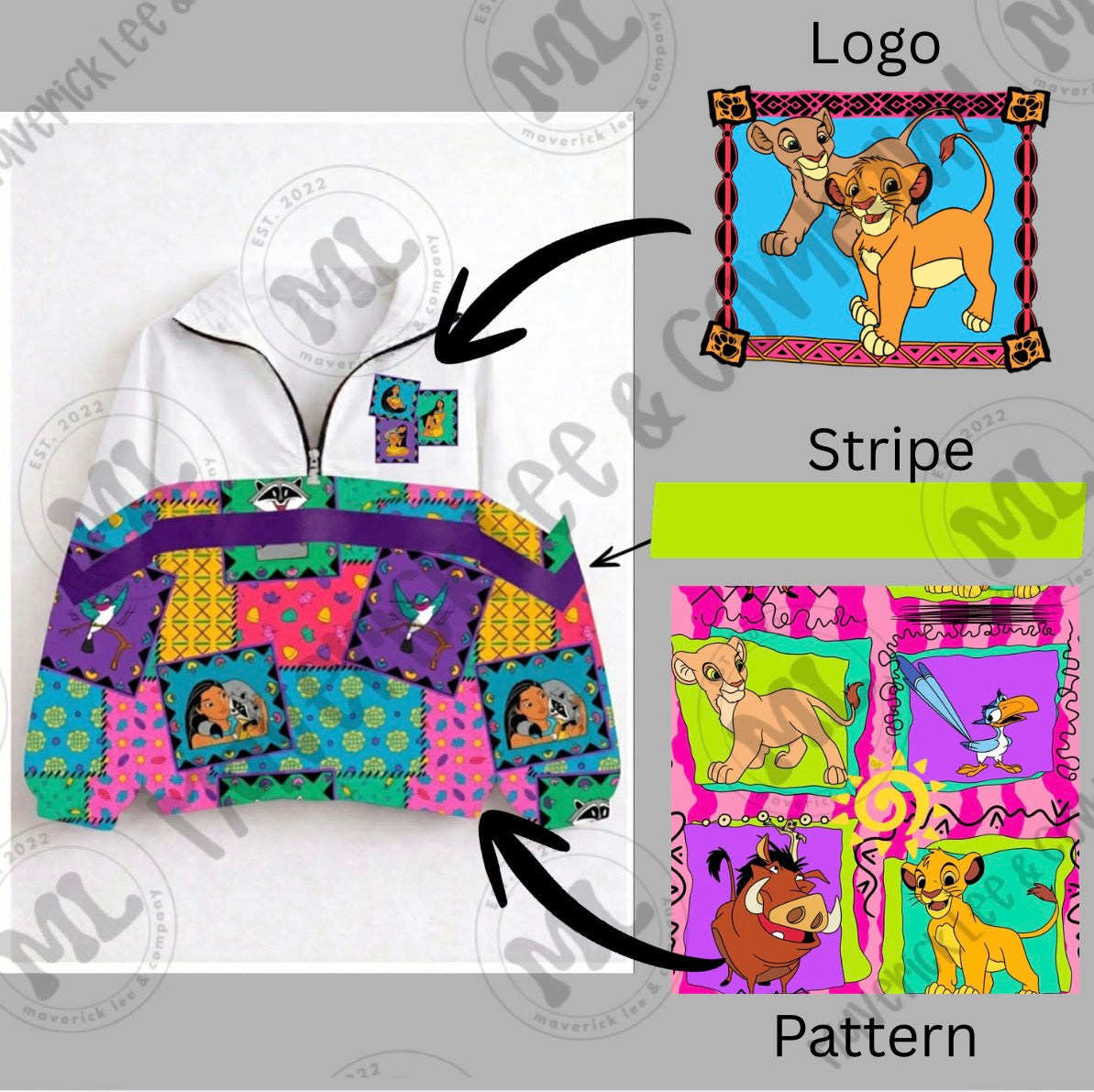 90s vibes quarter zip – lion with logo