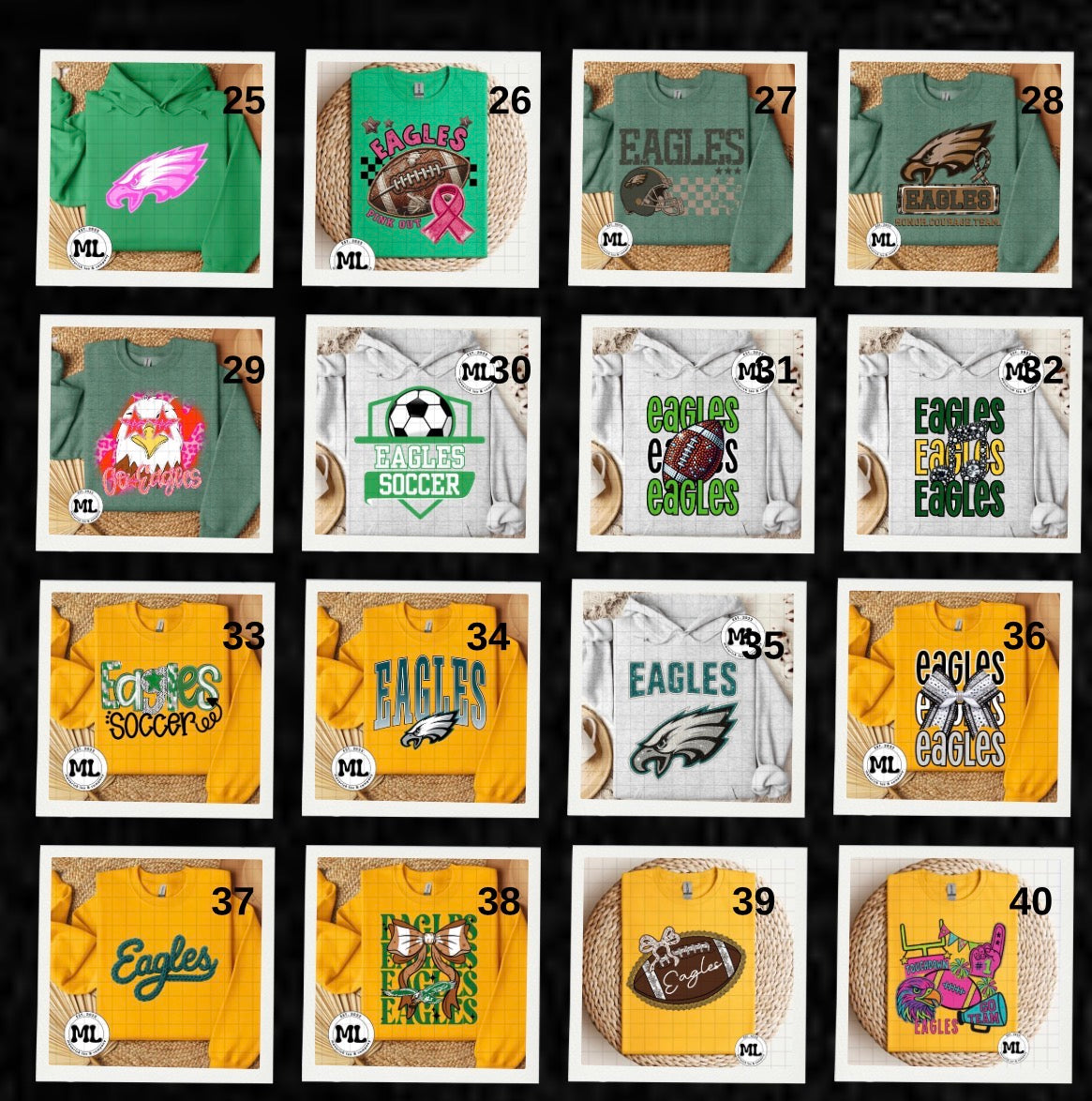 These are half tone designs. The black is removed from the design, leaving a white design only. This means these designs will ONLY show up on darker colors. Order accordingly