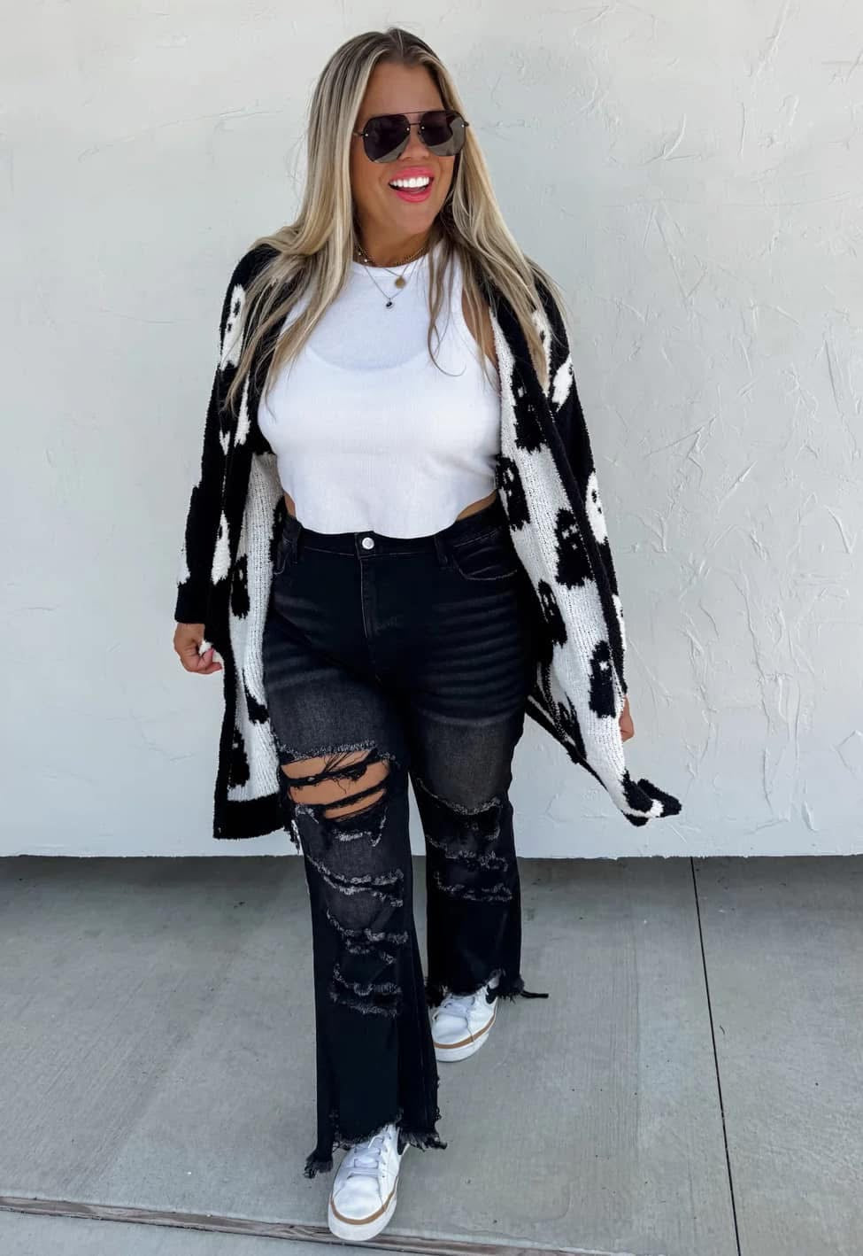 Trust us when we say you NEED this cardigan! Our Cloud Cardigans are so comfy, cozy and oh so soft! Similar to Barefoot Dreams Fabric (but softer). Trendy and REVERSIBLE ghost pattern with hidden side pockets that can be turned inside out depending on which side you want to wear.