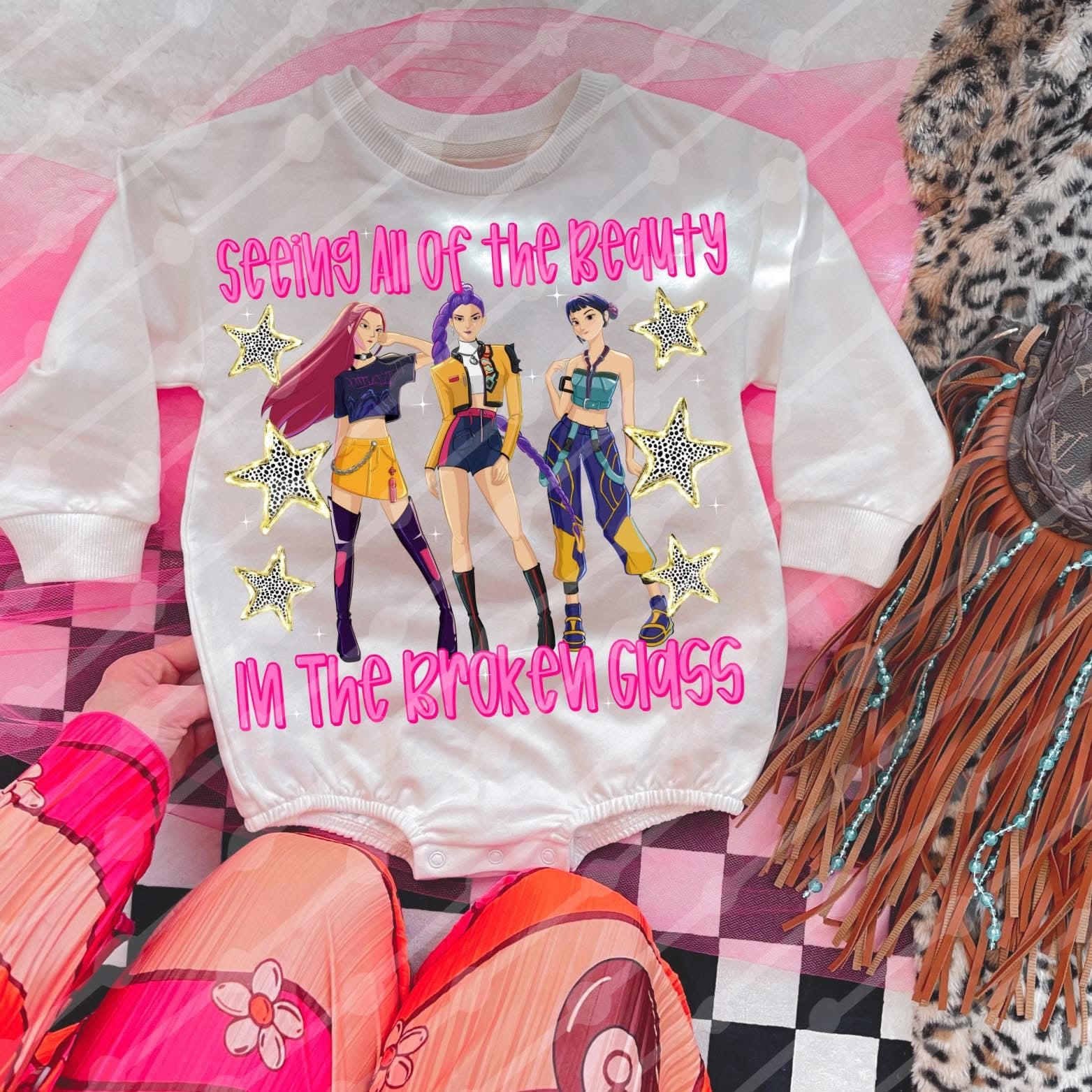 In the broken glass