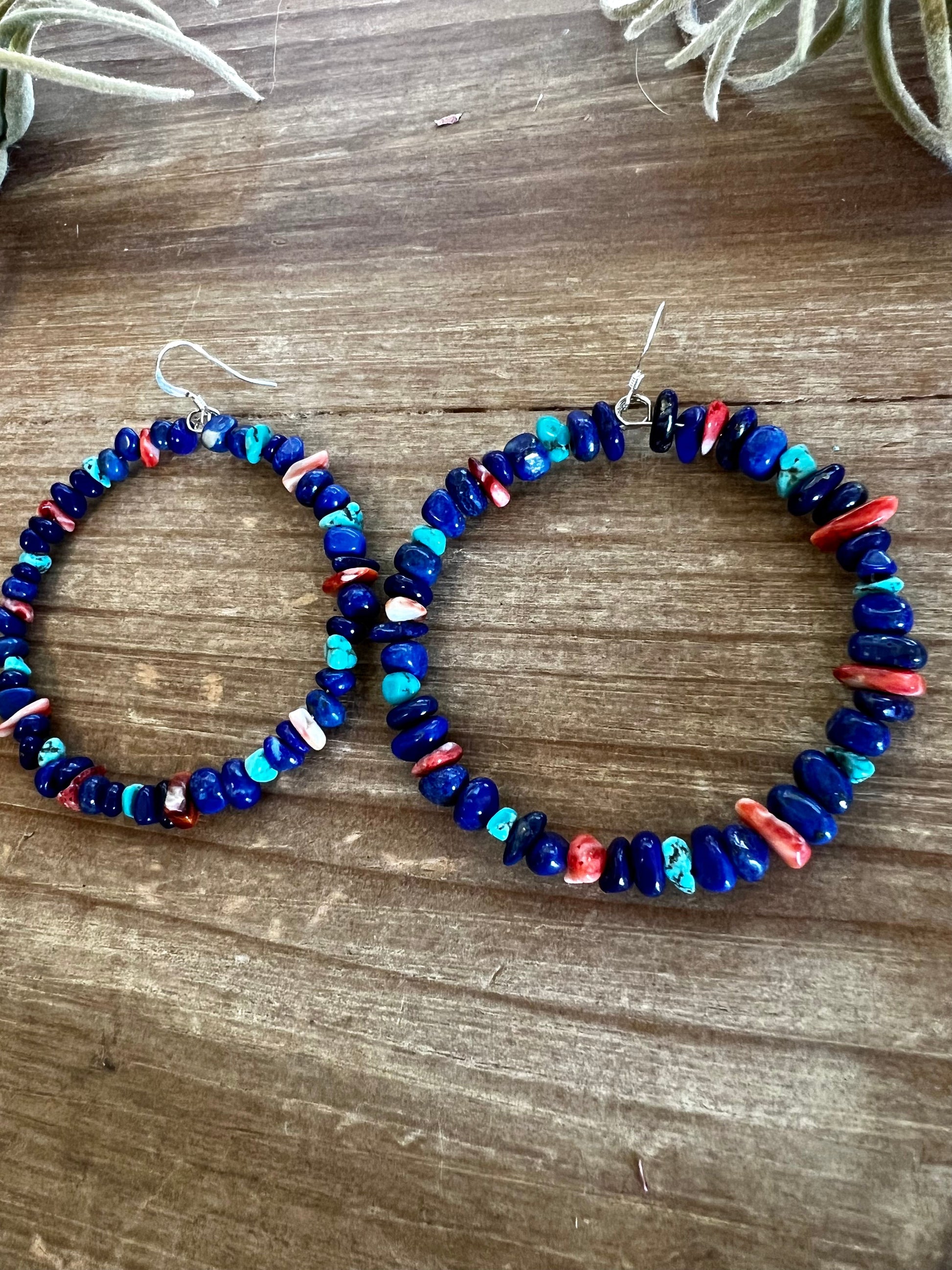 Lapis hoop earrings with spiny oyster and turquoise