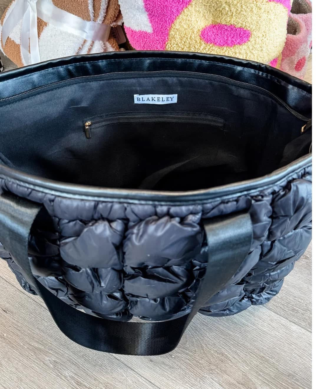 This high quality bag features the most trendy puffer/ bubble style fabric. The perfect size to fit lots of things inside! Includes an inside pocket zipper with 2 smaller open pockets for cell phones and makeup. Bag also completely zips closed on top.